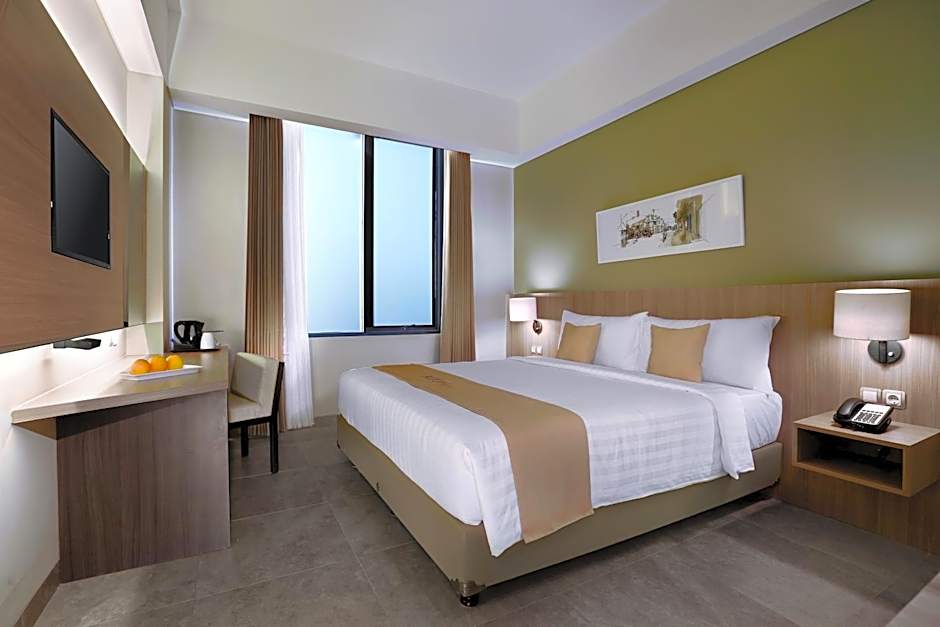 館内の飲食はLumbung Restaurantが担当しており、インドネシア料理と各国料理を家族連れに適したモダンな雰囲気で提供しています。朝食も用意されており、一日の始まりに利用できます。カジュアルな夜にはバーが利用でき、屋外には無料の屋外プールと散策に適した庭園があります。無料のフィットネスセンターもあり、アクティブに過ごしたい方にも対応します。ルームサービスにより客室での便利な食事も可能です。